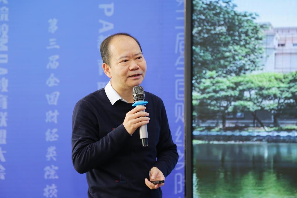 全国MPA教指委副主任委员、北京大学政府管理学院院长燕继荣通过视频致辞。他指出,为响应国务院学位委员会的号召,全国MPA教指委大力倡导和推动专业硕士学位的内涵式发展,积极鼓励MPA教学和人才培养质量按地区、分行业地整体提升。财经类大学是中国MPA专业学位重要的办学力量,面对政府财政管理、经济管理、金融管理人才等特别需求,以其专业化的知识和技能,提供独具特色的培养方案。结合当前国际国内形势变化,他指出如何将专业化的前沿问题和现实化的议题研究纳入MPA人才培养中、使MPA学员具备应对新局面的意识和能力尤为关键。由此,他指出MPA教育需要关注如何构建良好的营商环境、更好地利用市场机制、着眼体制和机制变革等现实议题,总结数字时代下政府治理变革的经验,在专业化道路上不断升级,助力政府管理不断迈上台阶。