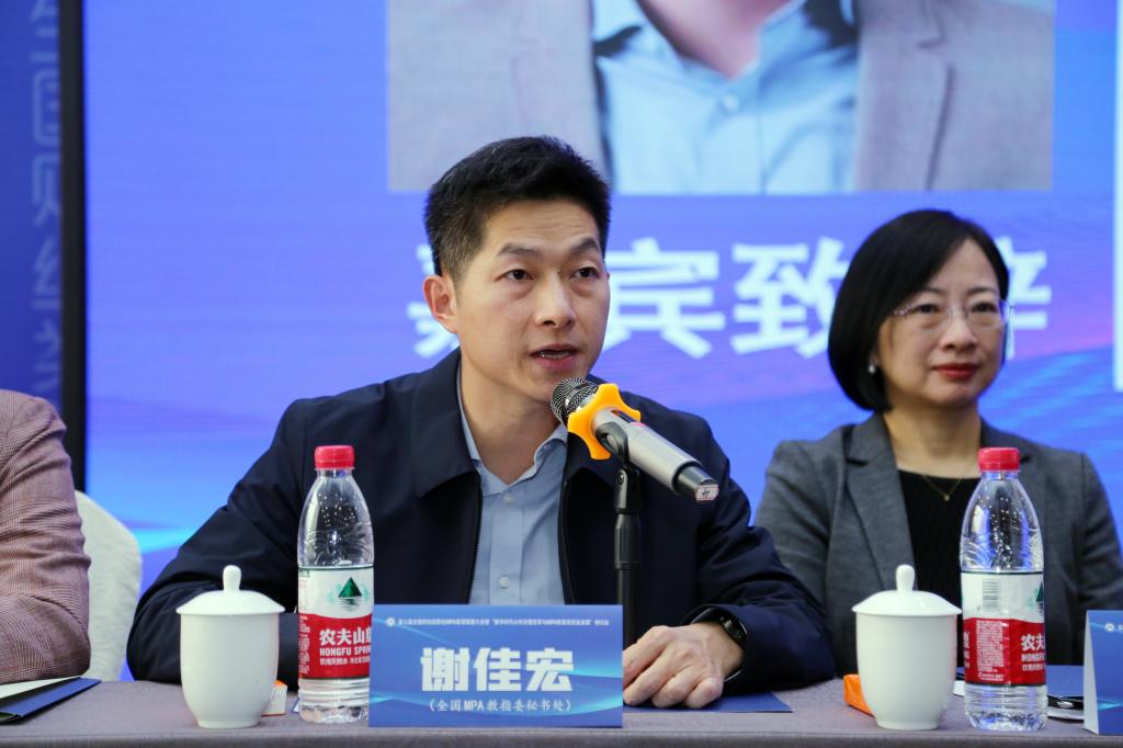 全国MPA教指委秘书处办公室主任谢佳宏从办学规模上、办学质量(优秀论文、入库中国专业学位案例库、中国研究生公共管理案例大赛获奖数)、干部队伍学历提升和能力的渠道、新任司局级干部中MPA学位占比等方面,以实际数据来说明MPA教育的重要性和财经类MPA培养单位在其中的中流砥柱作用。同时,他强调以ChatGPT为代表的AI技术对公共治理变革与MPA教育高质量发展中产生重要推动,今后将通过案例大赛、加强MPA教育的专业指导实践训练,有效提升公务员的职业胜任力。