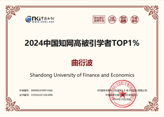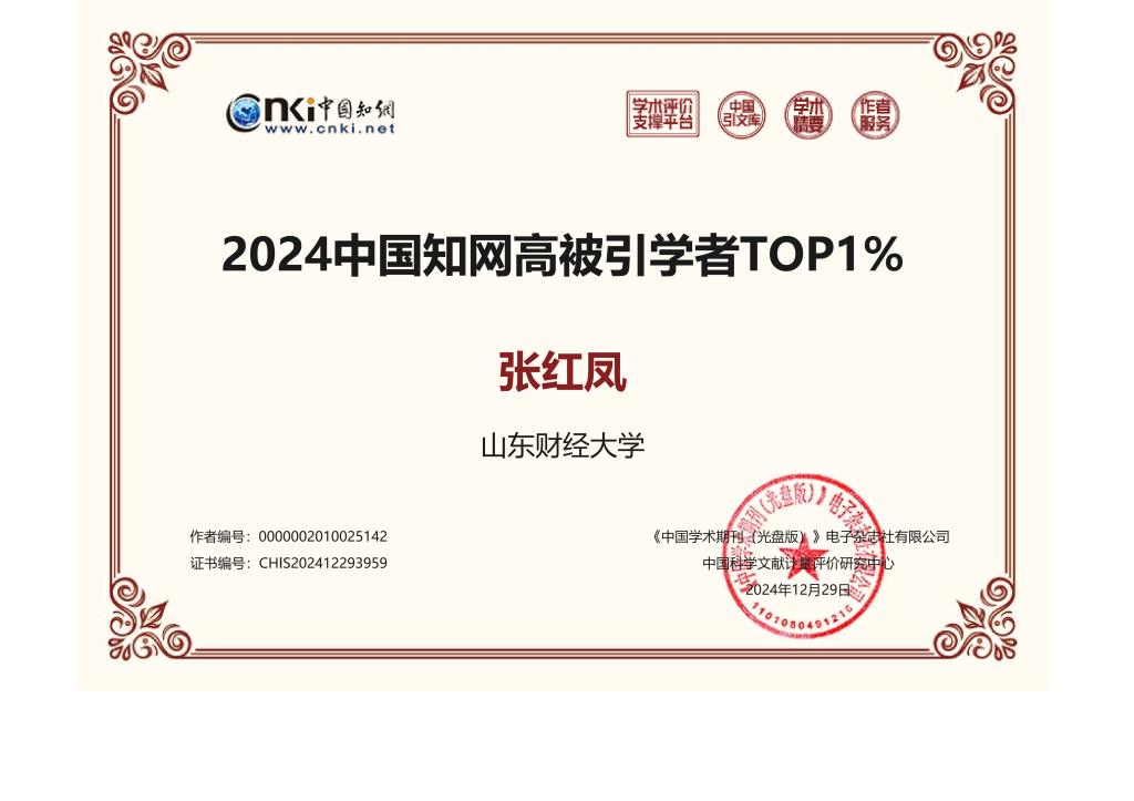 近日,中国知网遴选并公布了“2024中国知网高被引学者”名单,学部两位教授张红凤、曲衍波入选“2024中国知网高被引学者TOP1%”。